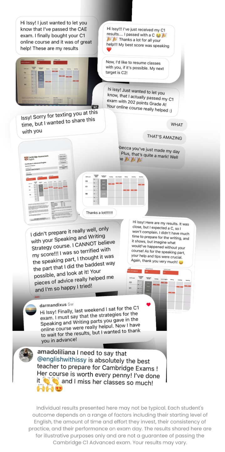 Alongside Issy, you'll learn from a specialist grammar coach and a certified Cambridge examiner, someone who has sat on the other side of the test and knows precisely what it takes to pass.