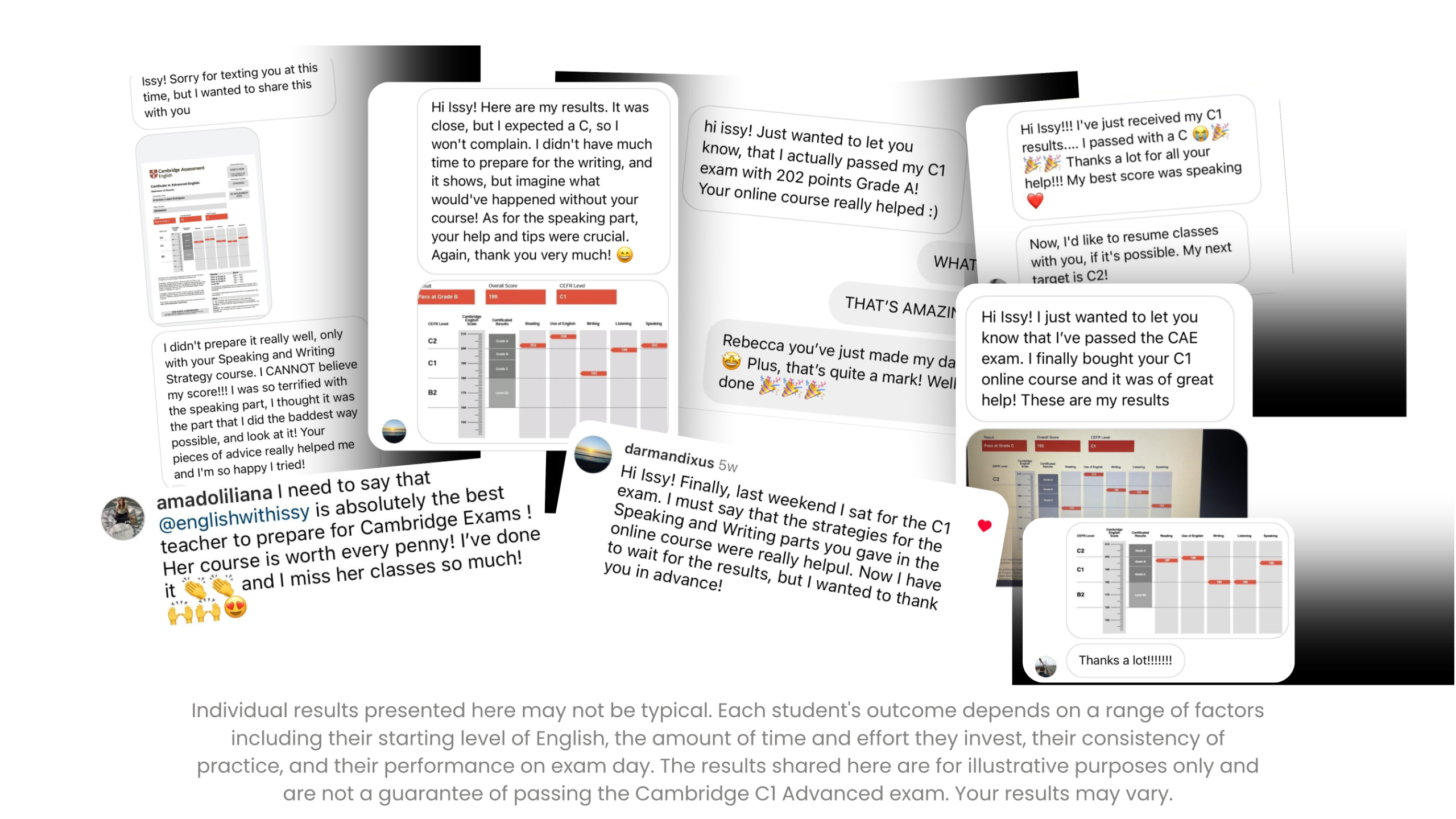 Alongside Issy, you'll learn from a specialist grammar coach and a certified Cambridge examiner, someone who has sat on the other side of the test and knows precisely what it takes to pass.